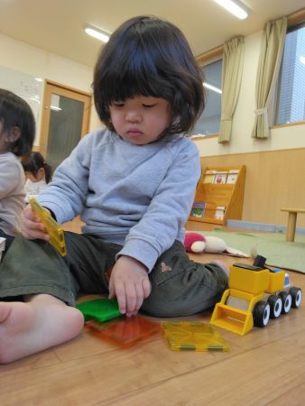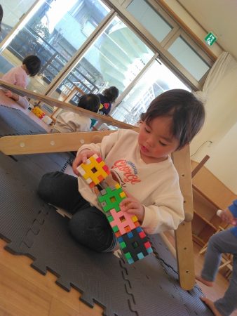 自分のイメージした物を表現することの楽しさを感じ、完成したときは笑顔で手を叩いて喜んでいますよ!
