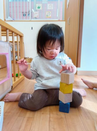 積み木にも興味をもって遊ぶ姿が増えています。