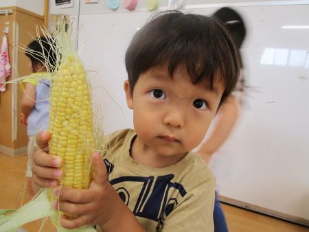 トウモロコシを実際に触り、感触を知る事が出来ました。