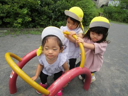 広場で走ったり遊具を使ってたくさん身体を動かして遊んできました。