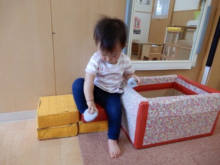 こんにちは。今日はアイン三枚町保育園0歳児クラスわかば組の様子をお伝えいたします。