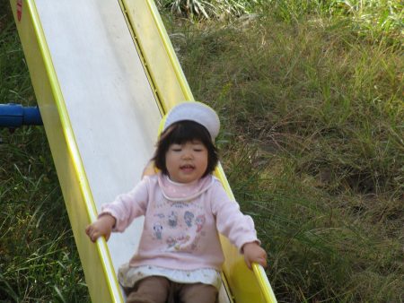 最近は坂道の方にある滑り台で遊ぶことが増え、よりスピード感やスリル感を味わう姿が見られるようになりました。