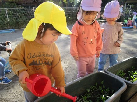 「大きくなーれ!」と言いながら慎重に水やり中です。