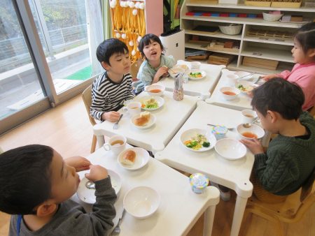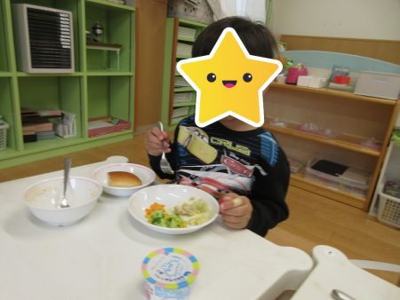 12月7日の給食の様子🥐~アイン三枚町保育園はな組(3,4,5歳児クラス)~