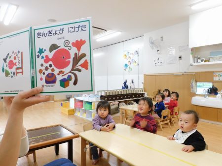 『きんぎょがにげた』の絵本を読むと、指差ししながら「ここ!」と応えていました。