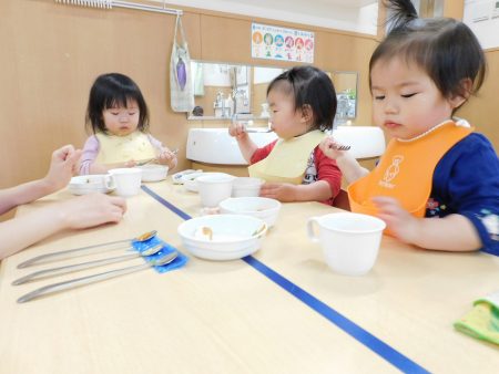 手を合わせて「いただきます!」皆美味しそうに食べています。