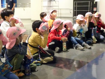 今日は、遠足に行ってきました。行先は「防災センター 横浜」です。行く前から、楽しみしている様子が伺えバスに乗るまでの足取りも軽かったです。