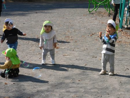 シャボン玉を飛ばすと手を伸ばし、キャッキャッと声をあげながら追いかけていました。