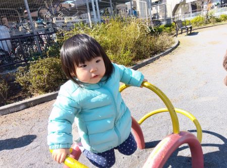 子どもたちは公園にある遊具にも興味を示し、自ら登って行こうとしたり、「いないいないばぁ」のように顔を覗かせたりするなど、それぞれが独自の遊び方で楽しんでいます。