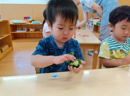 大きかった葉が段々と小さくなり、子どもたちも「小さくなったよ」とお話しながら集中して取り組んでいましたよ。