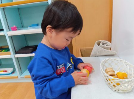 おしごと(モンテッソーリ活動)の様子~アイン三枚町保育園たんぽぽ組(1歳児クラス)~