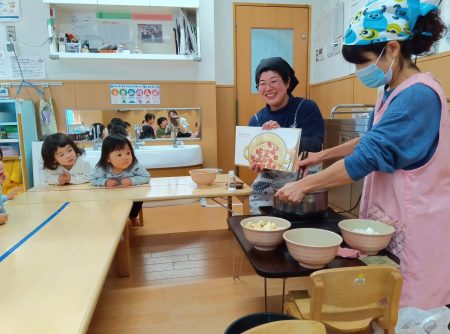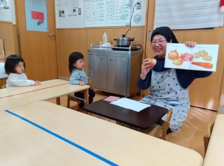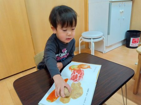 絵本のカレ-を作ってみたよ!~アイン三枚町保育園たんぽぽ組(1歳児クラス)~