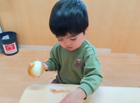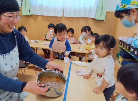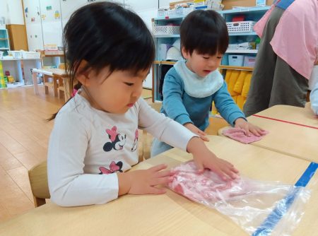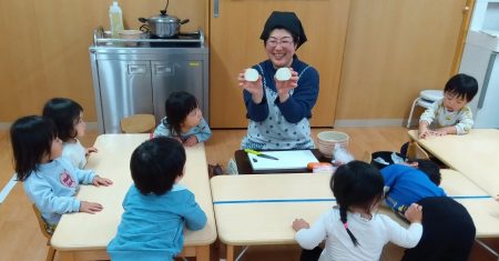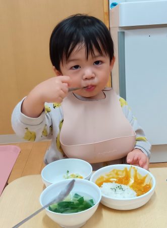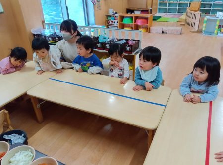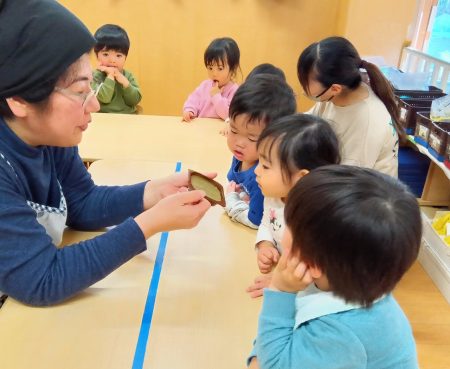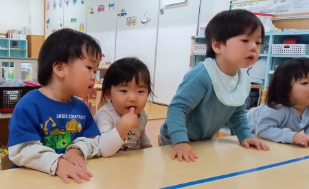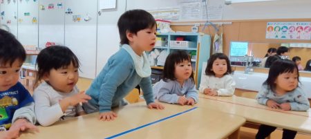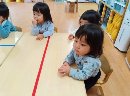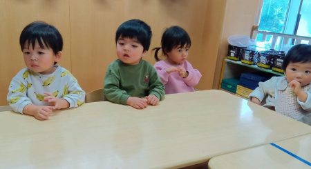 こんにちは、アイン三枚町保育園1歳児クラス、たんぽぽ組です。