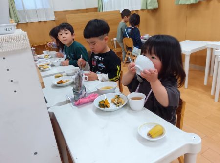 食事の様子アイン三枚町保育園 はな組(3・4・5歳児)