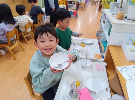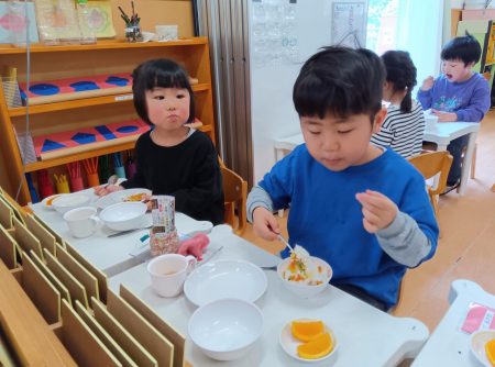 皆、美味しそうに食べています。完食すると「全部食べたよ!」と見せてくれる子もいます。