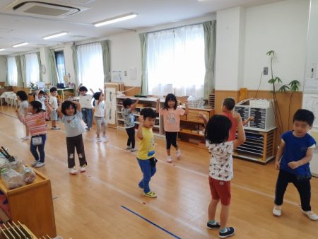 先週は公園でダンスやかけっこの練習をしましたが、今年は厳しい暑さが続いてなかなか戸外に出れず、室内での練習を沢山した年でした。