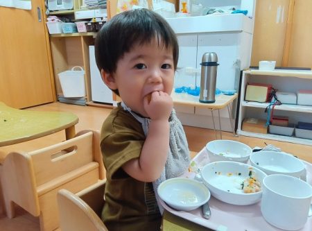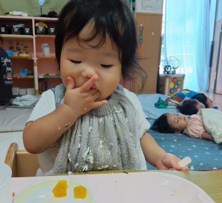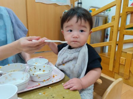 クッキング活動の様子~アイン三枚町保育園 わかば組(0歳児)~