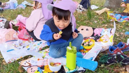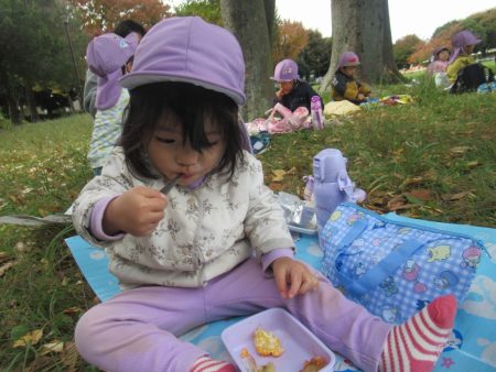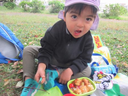 お友だちと一緒にお外で食べるお弁当はおいしいね!