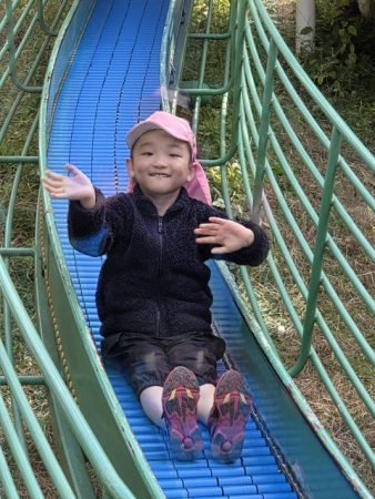 階段や上り坂など結構ハードな遊具がたくさんありましたが、無心で上り下りを楽しんでおり、頂上から降りることのできるローラー滑り台を息を切らしながら何度も何度も楽しんでいました。