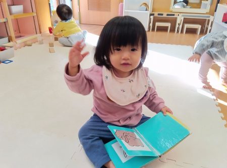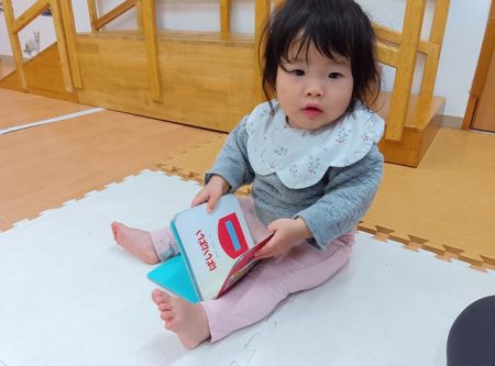 子どもたちは好きな絵本を持ってくると、めくることを楽しんだり、保育士に読んで欲しいと差し出す姿が見られています。