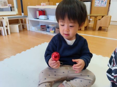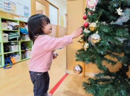 園では今週からツリーが飾られ、興味津々な様子が見られています。