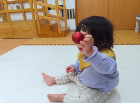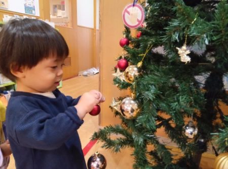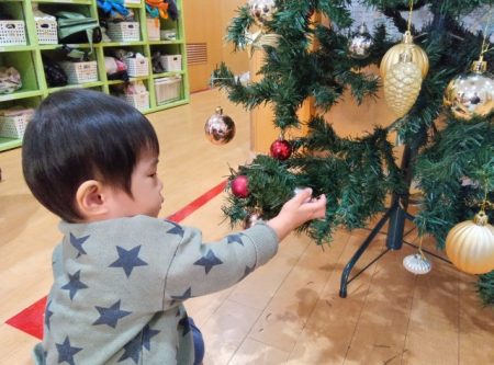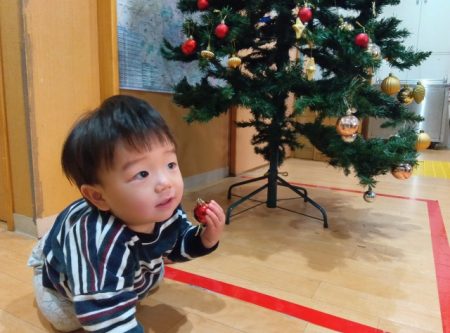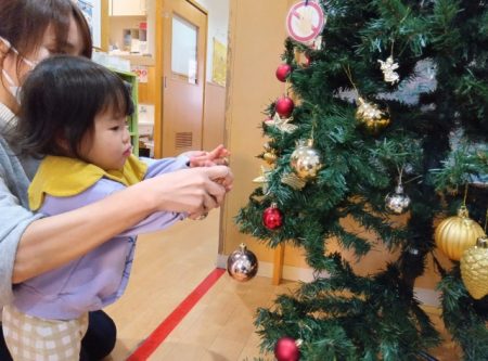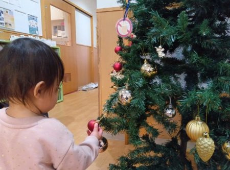 ツリーに飾り付けをしたよ!~アイン三枚町保育園 わかば組(0歳児)~