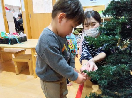 そこで今回はみんなでクリスマスツリーに飾り付けを行った際の様子をお伝えします。