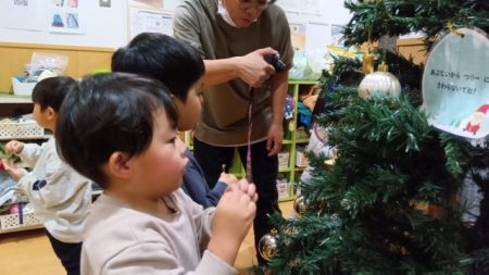 そんな中で保育園に一本のクリスマスツリーが建てられました!