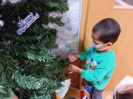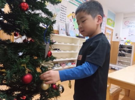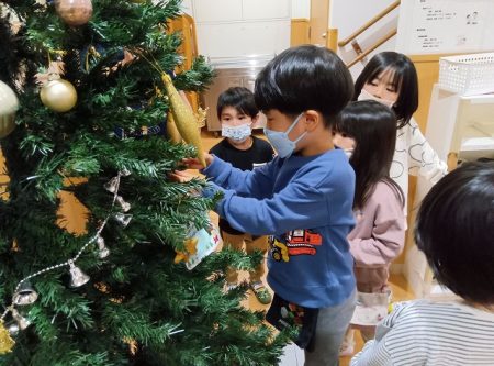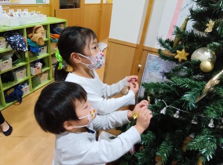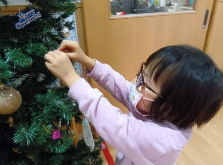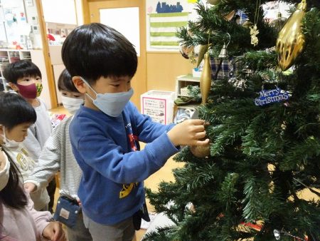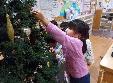 12月に入り、皆でクリスマスツリーの飾り付けをしてクリスマスに備えていた子ども達。