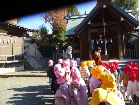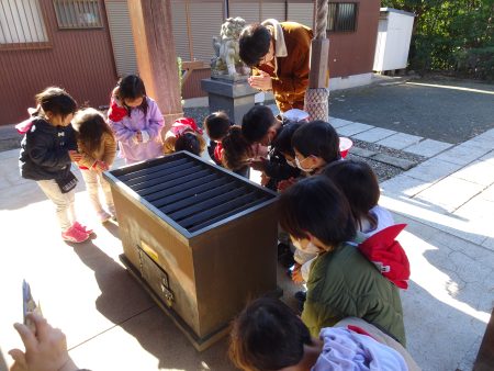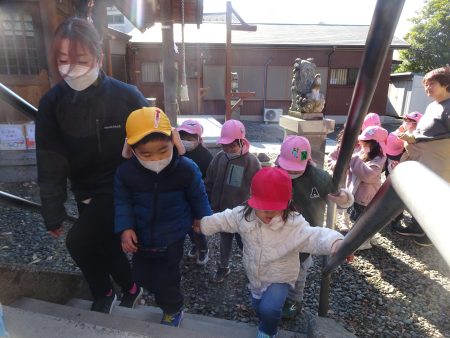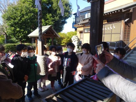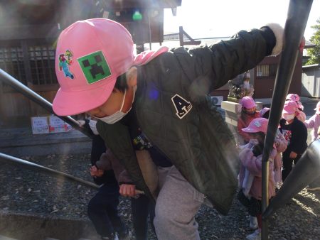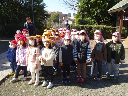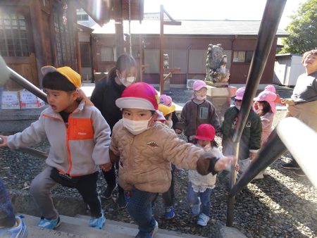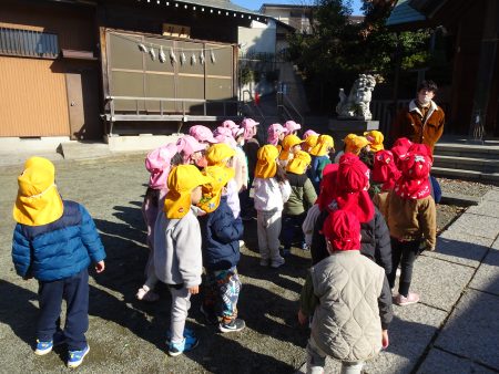 はな組では毎年新年に、園近くの神明社という神社にみんなで初詣に行きます。