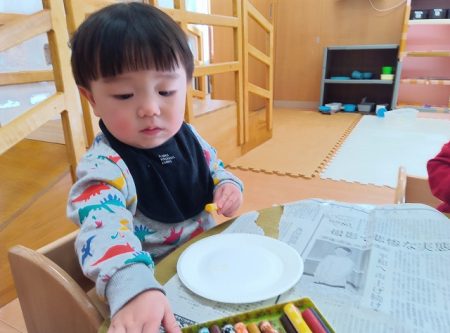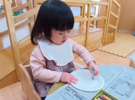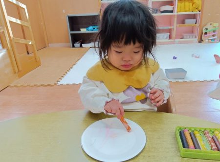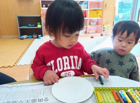 子どもたちも好きな色を選び、思い思いに描いたり、集中してシール貼りに取り組んでいました。