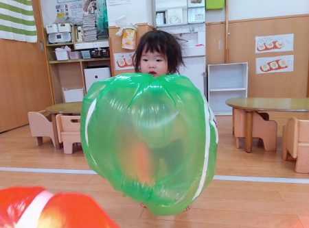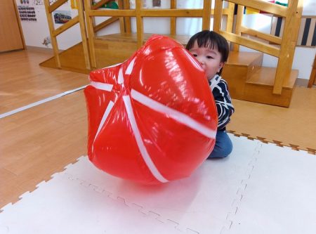 子どもたちも大きなダルマに夢中で触ったり投げたりすることを楽しんでいます!