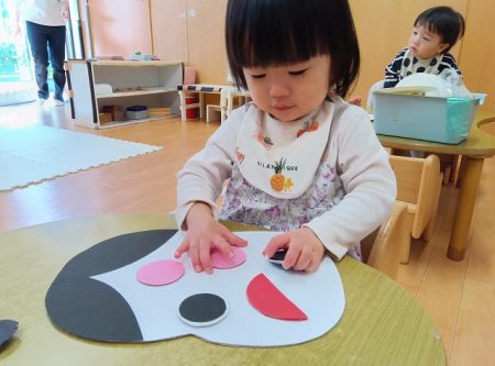 福笑いでは、初めに保育士が見本を見せながら取り組みました!