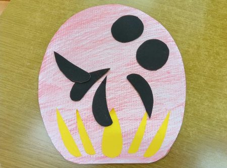 身近な物を使ってクレヨンでお絵かきやシール貼りをしながら製作もしました。