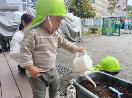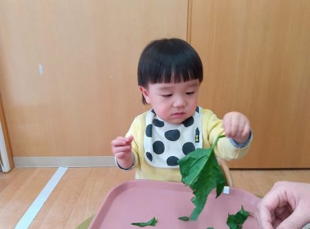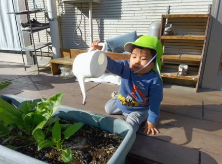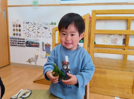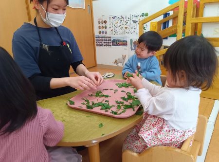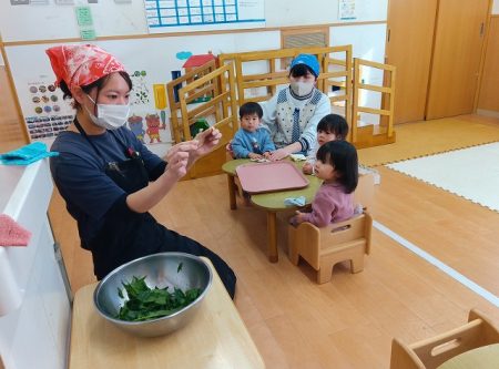 ほうれん草の栽培とクッキング活動をしたよ!~アイン三枚町保育園 わかば組(0歳児)~
