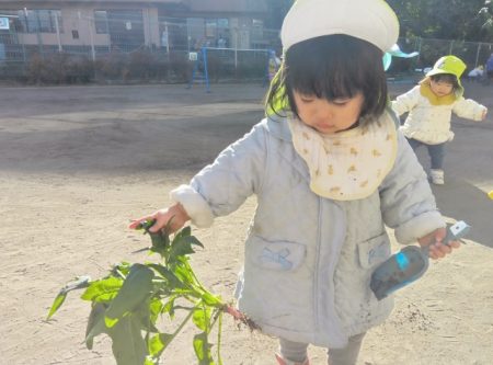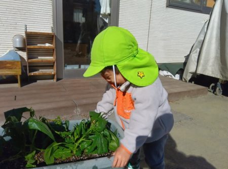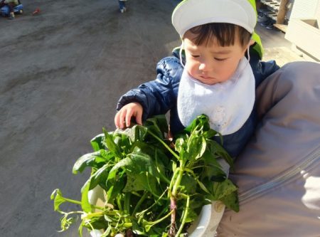 11月に植えたほうれん草がとても大きくなり子どもたちと収穫をしました。