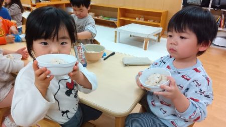 クッキングでおにぎりを作ったよ!~アイン三枚町保育園 すみれ組(2歳児)~