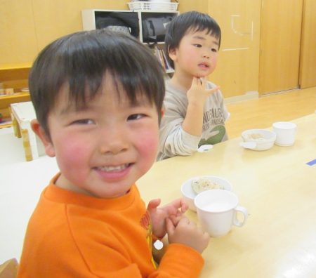 「おいしい!」「おにぎりのあじがする!」「ちょっとからいね」など様々な反応がありました。