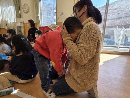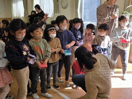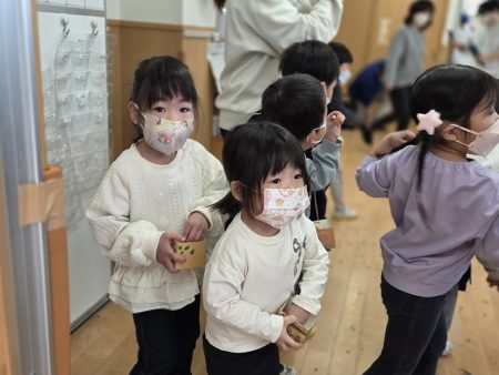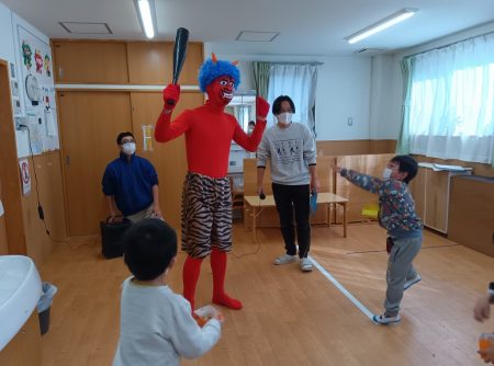 節分当日、朝の登園時に保護者の方々から「今日は行きたくないって言ってましたが、連れてきました」と笑いながら来てくれました。