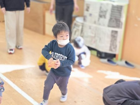 子ども達は俊敏に動いて、豆を鬼にぶつけていました。
