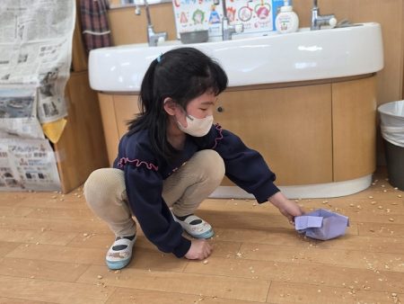 最後はみんなで豆を拾い集めて部屋を綺麗にしました!