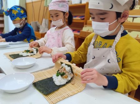 2日の朝、子どもたちは「恵方巻作るんだよね」「楽しみ!」と言いながらも、「はあ~・・・」