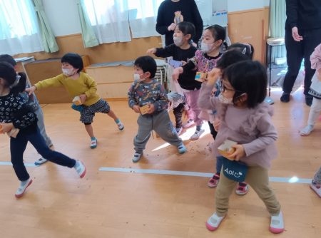 鬼がやっと退散すると「あーーーー怖かった」「やっと帰ったよ」などもらしていた子ども達でした。