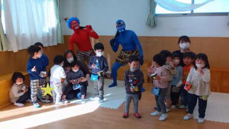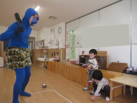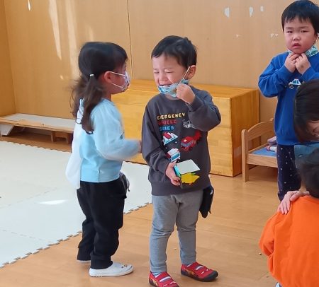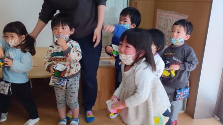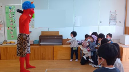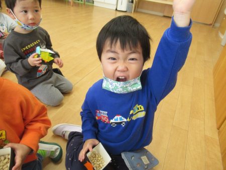 勇敢に鬼に立ち向かっていく子や、泣きながらも豆を投げる子がいて、なんとか鬼をやっつけることができました!