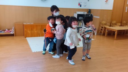 「さっきのおにはこわかったけど、このおにはかわいいね!」と子どもたちに笑顔が戻りました!