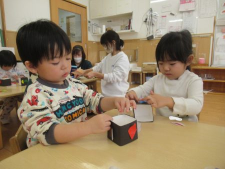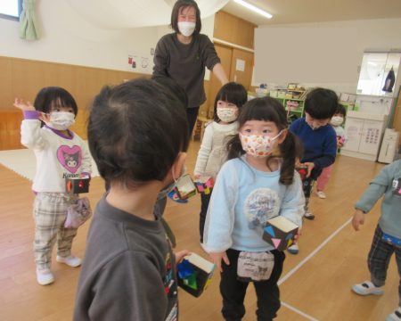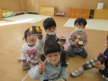 節分の製作と豆まきの様子~アイン三枚町保育園すみれ組(2歳児クラス)~