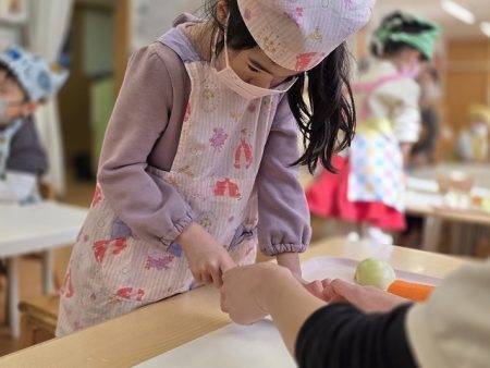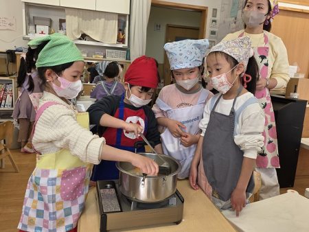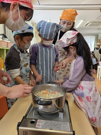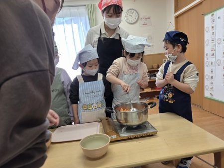 保育園でのクッキングでは、基本的自分達でどんどん進めていることを伝えると驚いていました。