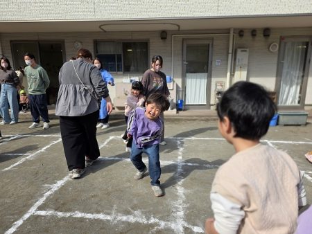 ルールを説明をしてからスタート!最初は子ども達が鬼をやってくれました。お父さんお母さん、おばあちゃんも考えながら逃げるのに必死な表情が良かったです!