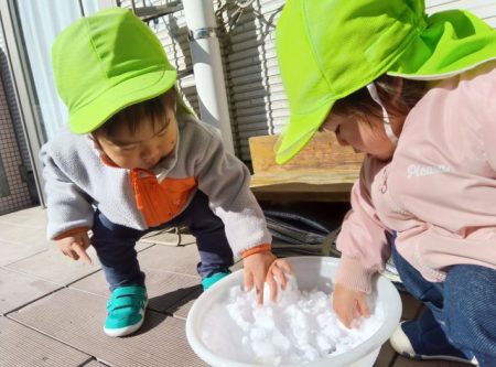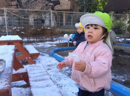 友達と一緒に雪の感触に触れたり、集めることを楽しんでいます!
