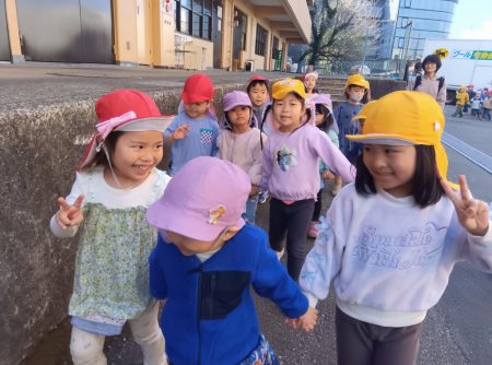 また、最近は来年度を見越して、ゆり、ちゅーりっぷ、すみれ合同でお散歩に行っています。